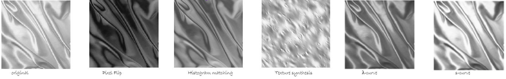 - use subband analysis and histogram manipulation (s-curve, λ-curve) to estimate the glossiness of texture